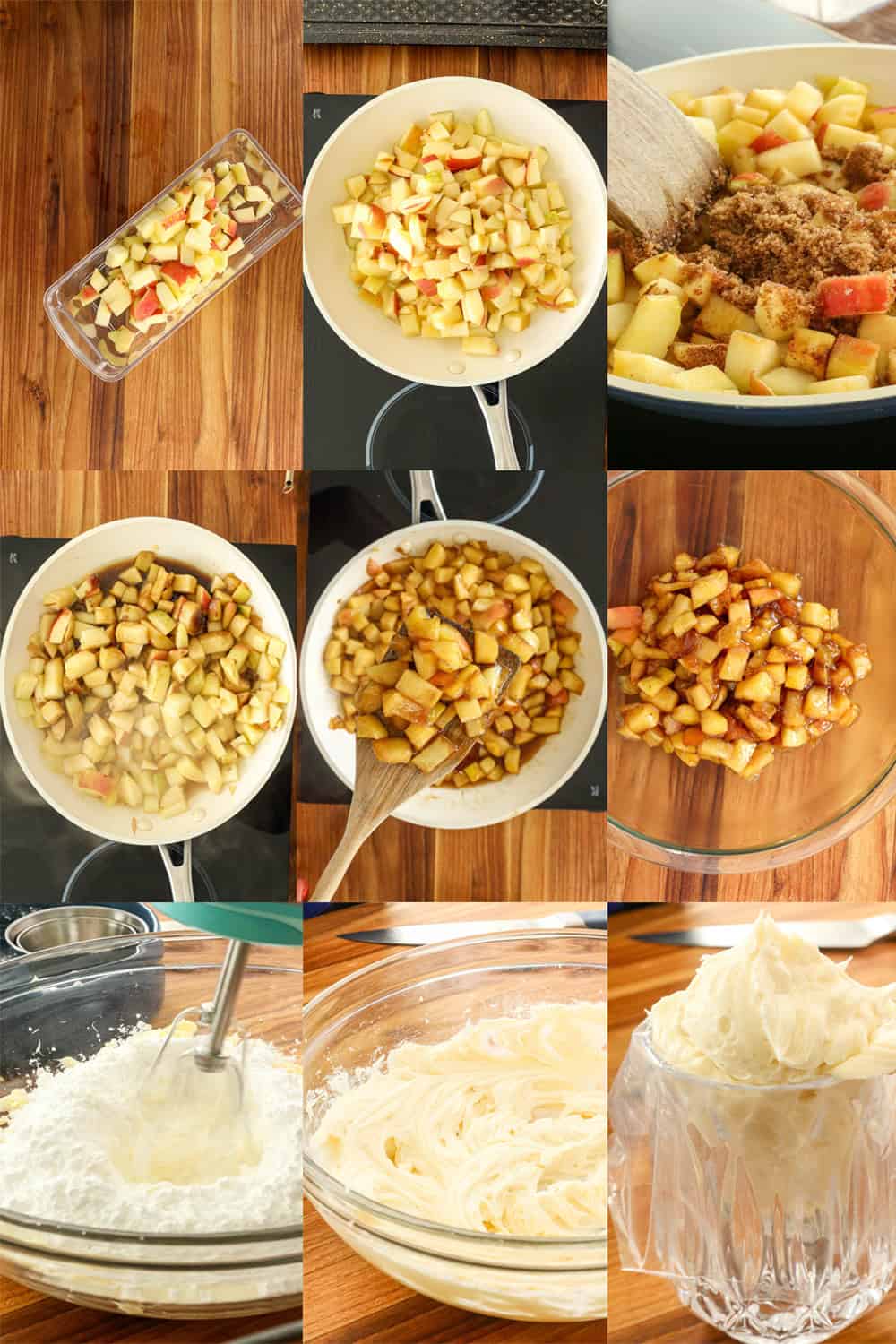 - Bake the Cookies: Scoop dough onto a parchment-lined baking sheet and bake at 350°F (175°C) for about 8-10 minutes (I baked mine for 8 minutes), or until the edges are golden and the centers look soft. Let cool.Make the Apple Pie Filling: Melt butter in a small pan, then add diced apples, brown sugar, maple syrup, Belans, vanilla extract, and salt. Cook until the apples soften (about 5–7 minutes). Stir in the cornstarch slurry to thicken, then remove from heat. Transfer to a bowl and let cool completely.