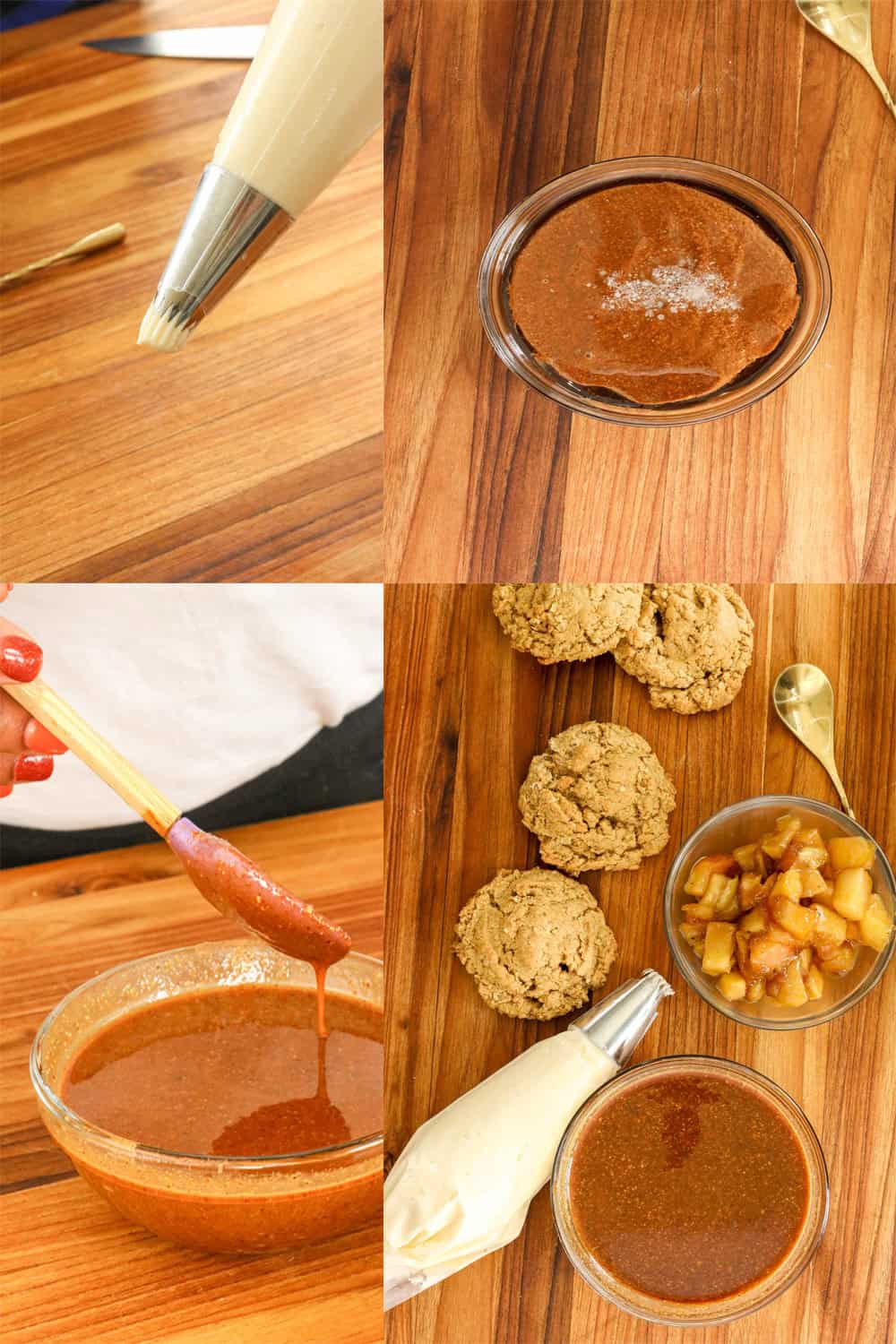 - Make the Cream Filling: Beat butter until creamy. Add powdered sugar, vanilla, and heavy whip cream. Whip until fluffy. Transfer to a pipping bag (if possible). Assemble the Cookies: Spoon a layer or pipe the cream filling onto one cookie (flat side), top with apple pie filling, drizzle caramel on top of apple pie filling, and sandwich with another cookie.