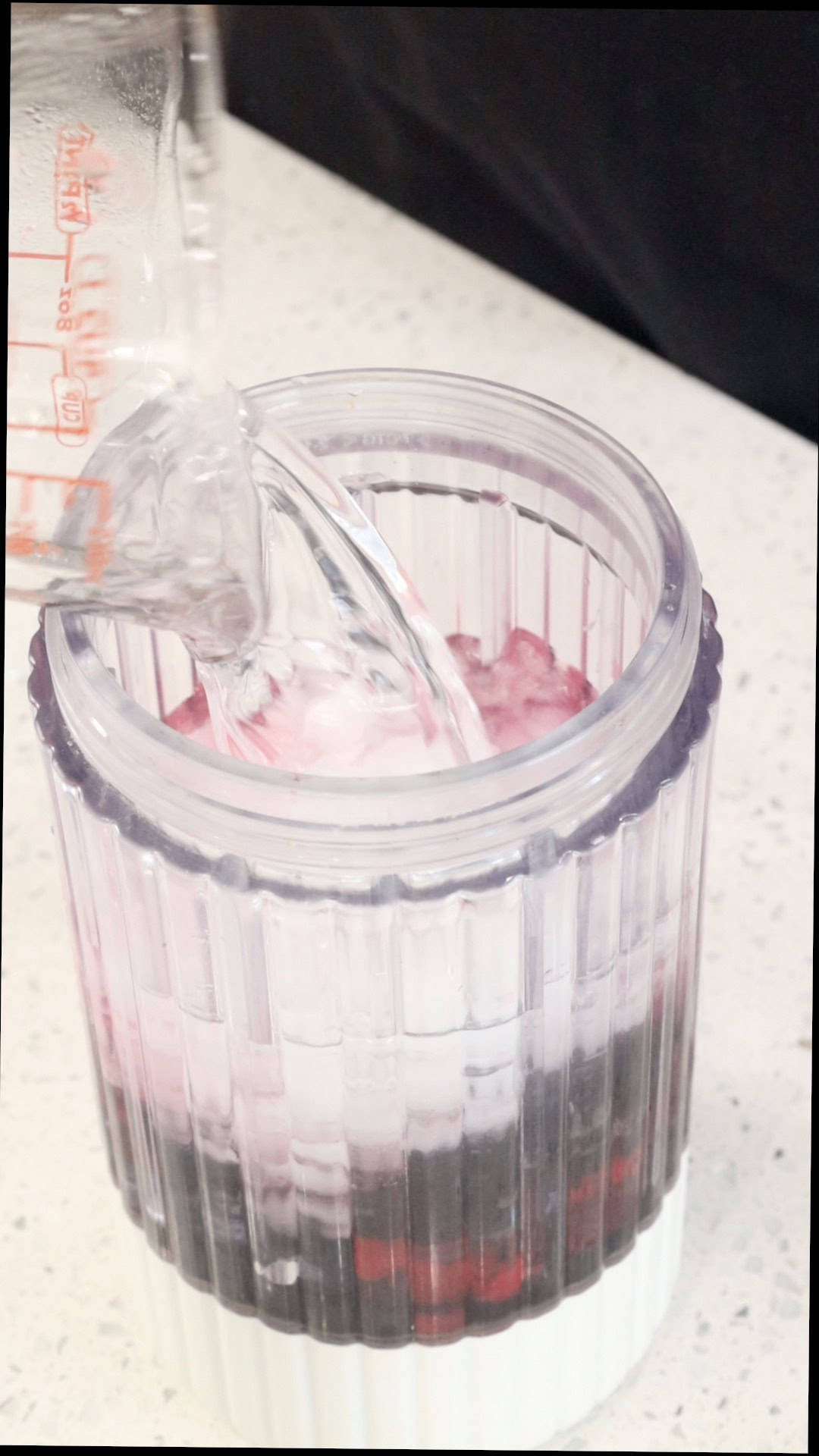 Frozen Berries and crushed ice: These are the star. Frozen berries and a little bit of ice make your drink icy and thick—no need to add a large amount of ice. An abundant amount of ice water things down. I use storebought already packaged mixed frozen berries from the freezer section. The mix include blueberries, blackberries, and raspberries – for depth of flavor and a gorgeous deep color.