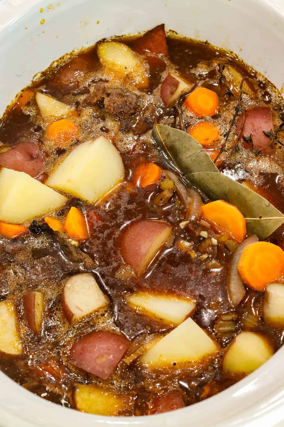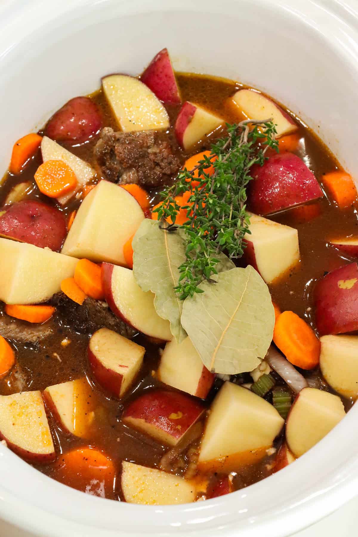 Vegetable broth → Beef broth or chicken broth works well in this slow cooker beef stew recipe; just use low sodium so you can control the seasoning.